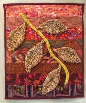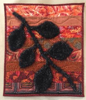 Art Quilts, Medium Colors of Leaves: Yellow on Red Colors of Nature: fuzzy black on red Colors of Nature: Black on red
